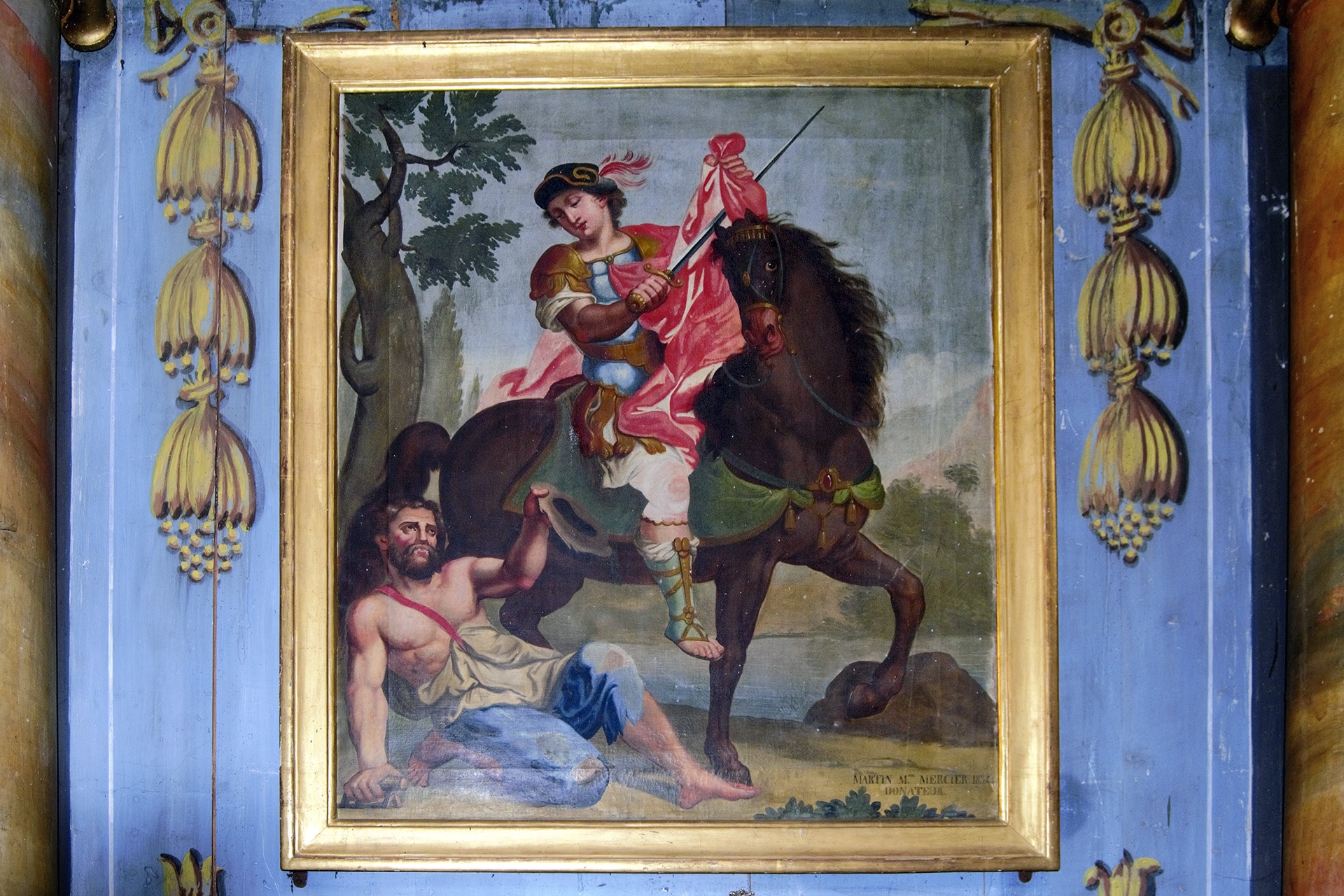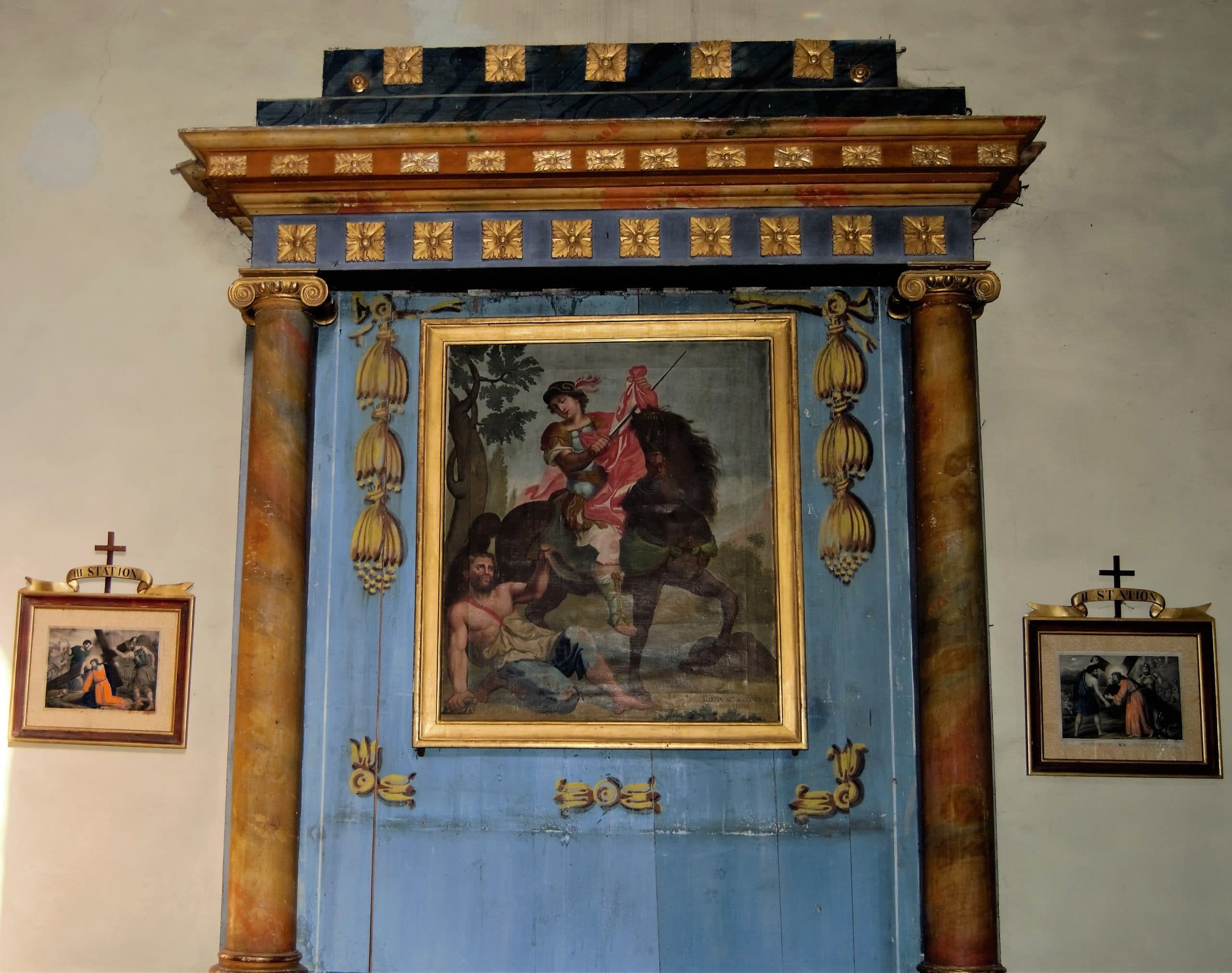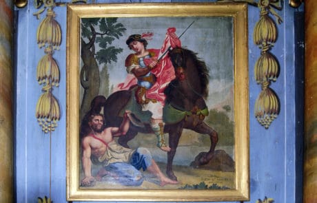 L’autel St Martin et son tableau : En 1834, il a remplacé l’ancien autel du Saint-Esprit et a été conçu par le sculpteur Jacques Schirra sur le modèle de celui du Rosaire. Le tableau a été offert la même année par Martin Marie Mercier. Il représente St Martin, encore soldat romain, qui partage son manteau avec un pauvre.