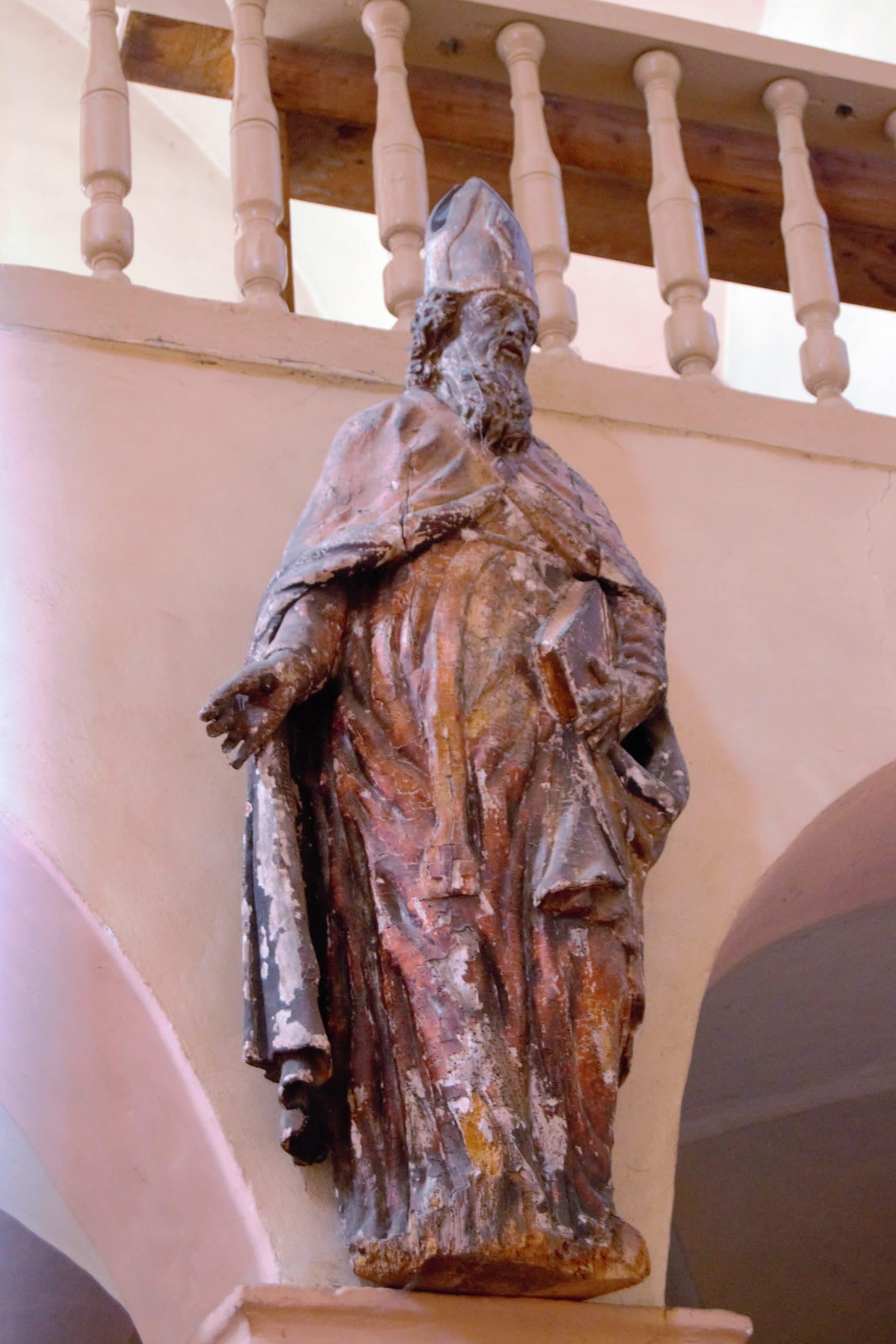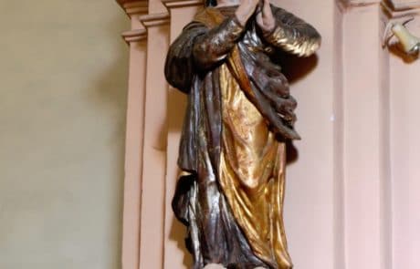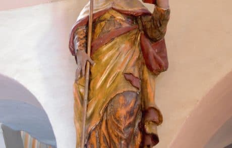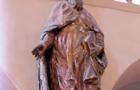 Les statues de la Vierge Marie, St Jean, St Clément et St Martin : Toutes proviennent du retable d’origine et ont été sculptées dans l’atelier de Marin et Clairant. On en trouve mention dans le prix-fait de 1698. La Vierge et St Jean ont été restaurées au début des années 2000.